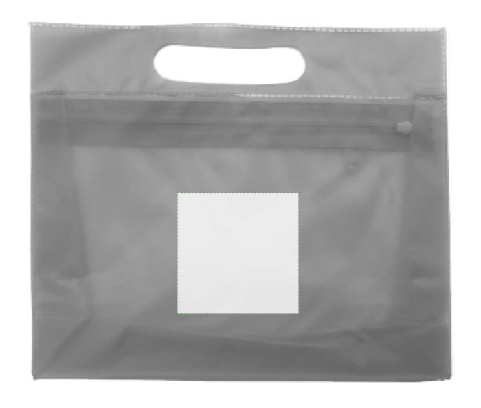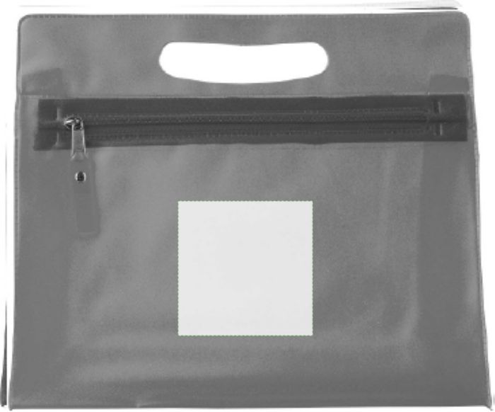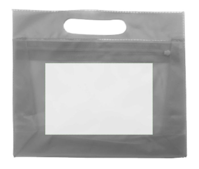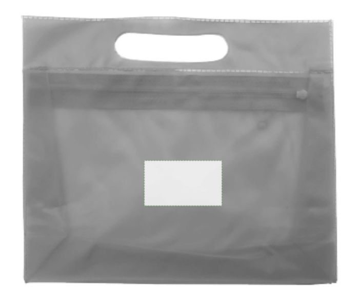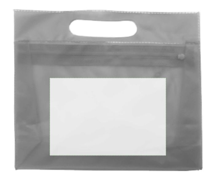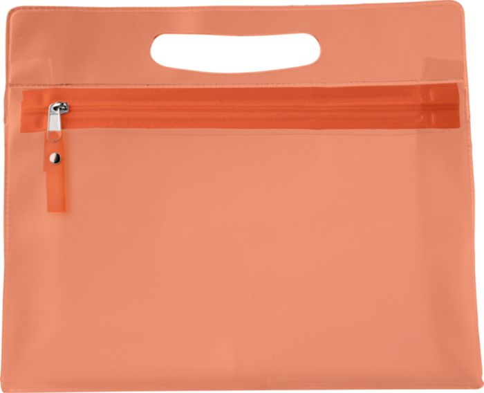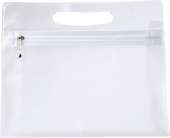 Necessär i frostad plast med integrerat handtag och matchande dragkedja.