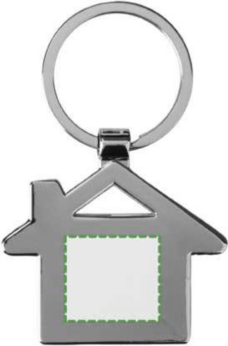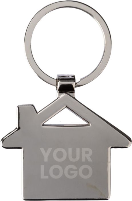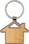 Nyckelhållare i zinklegering med husdetalj av bambu och metallring. Hål på ovansidan. Individuellt förpackad i en brun hylsa av kraftpapper.