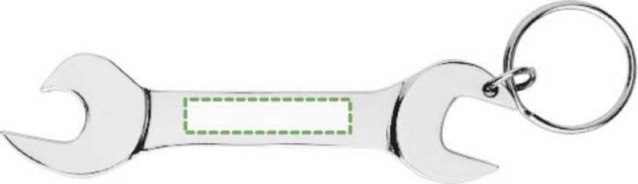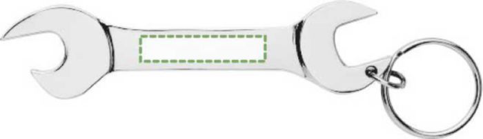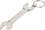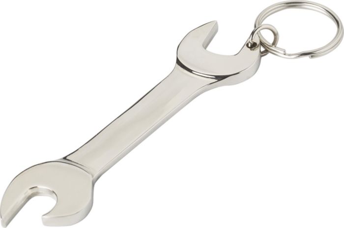 Nyckelring i metall. Formen av en skiftnyckel med öppnare.