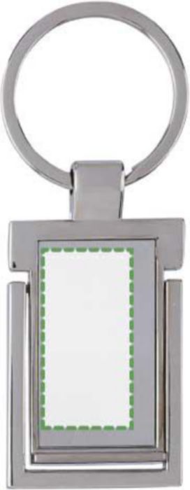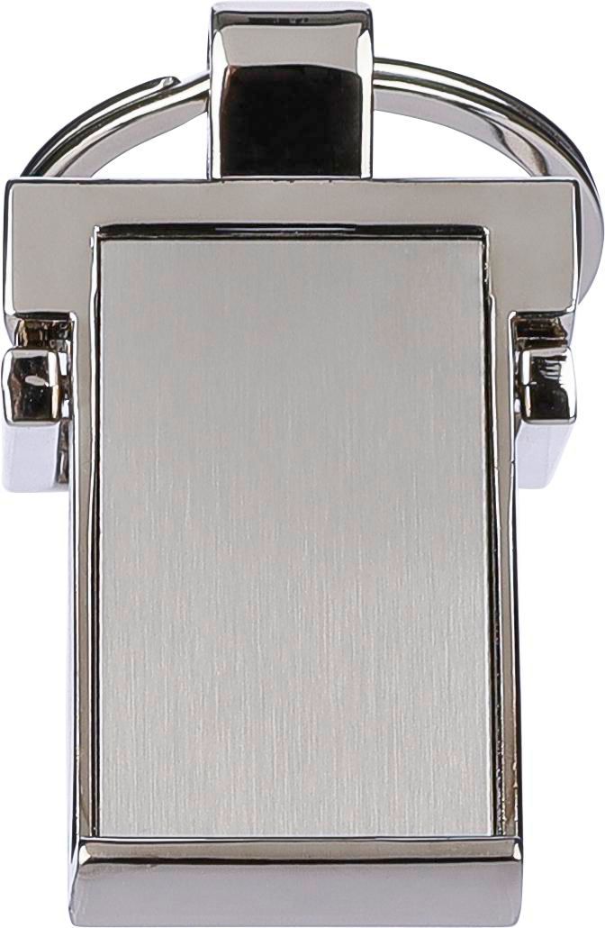 Nyckelring i zinklegering med metallring. Nyckelring fungerar som ett telefonstativ. Individuellt förpackad i en brun papperspåse.