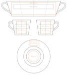 DecorationsTryck på handtaget; Tryck på insidan (max: 40x15 mm); Tryck på botten, insida (max: ø30 mm); Tryck på bottens utsida (max: ø35 mm); Kantband; Tryck på fatet (max: ø50 mm); Kantband på fatet; Print on the whole saucer; Namntryck; Guldtryck; Silvertryck; Termotryck