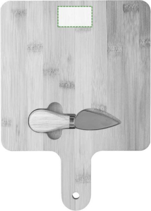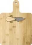 Ostbricka i bambu med tillbehör som passar i utskurna fack. Individuellt packad i ask av kraftpapper.