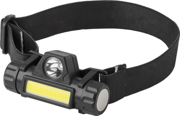 Pannlampa i ABS med en LED och en COB-lampa. Växla mellan de olika lamporna genom att trycka på knappen. Lampan kan riktas och är enkel att ta av från pannbandet. Laddningsbar via ett micro USB-C port. 3W/100lum
