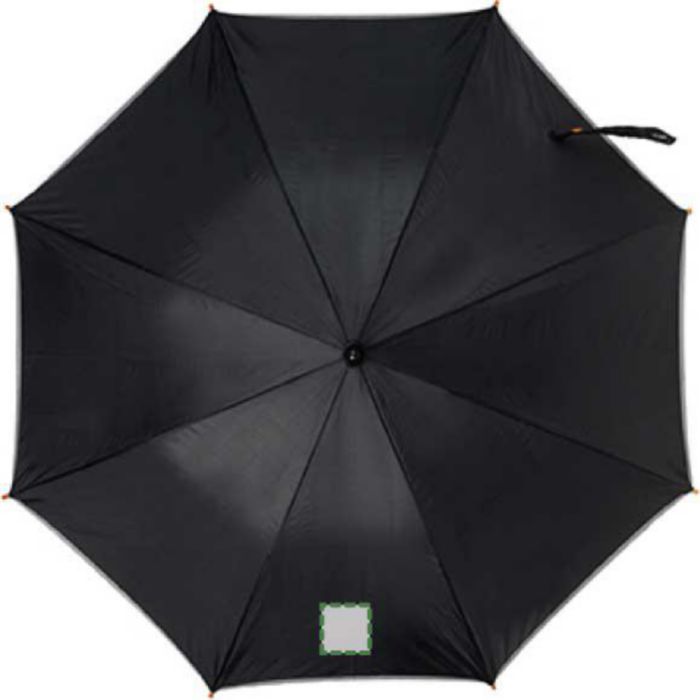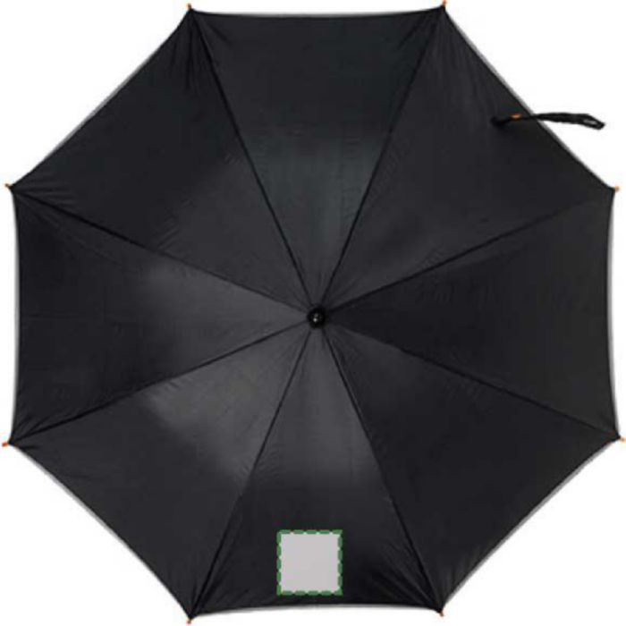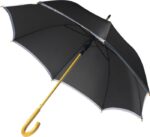 Paraply i polyester (190T), 8 paneler, med automatisk öppning, reflexkant, skaft och krycka i trä.