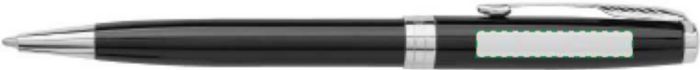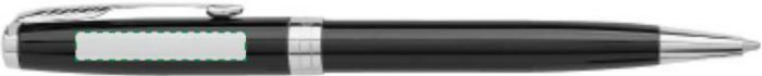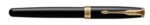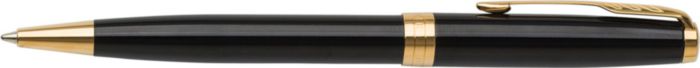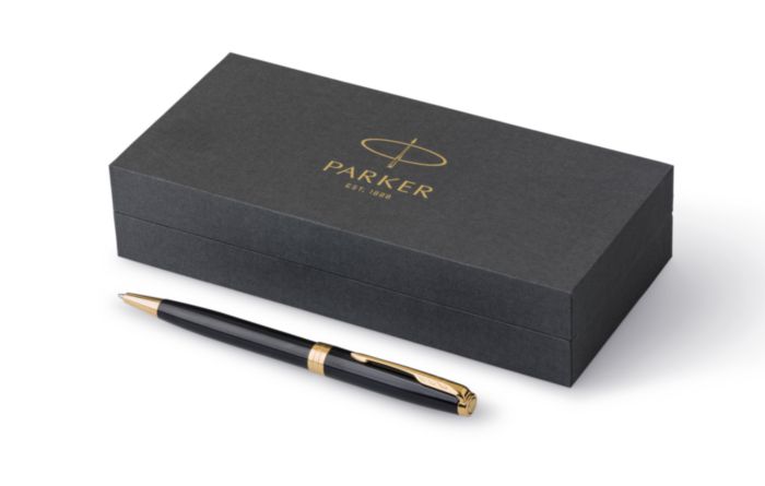 Parker Sonnet kulpenna i rostfritt stål och lackad mässing med vridmekanism. Svart bläck. Förpackad i presentförpackning.