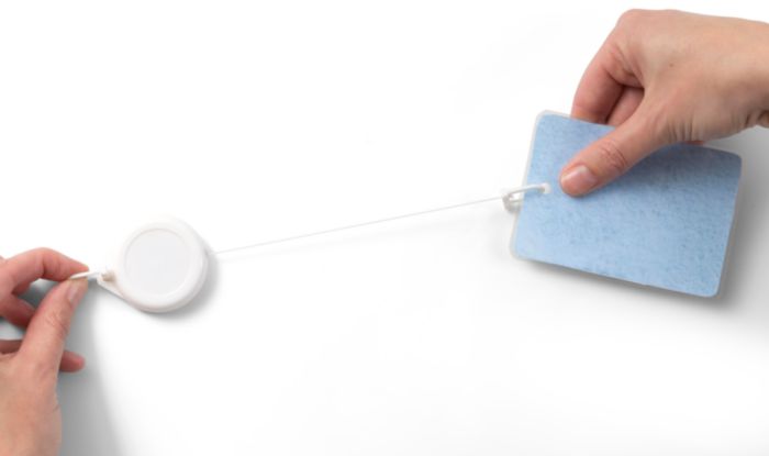 Lift-/passerkortshållare i plast med återfjädrande utdragbart snöre på ca 80 cm.