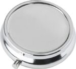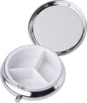 Pillerask av järn med insida av PP med 3 fack. Blank insida som kan användas som spegel. Individuellt förpackad i en vit låda.