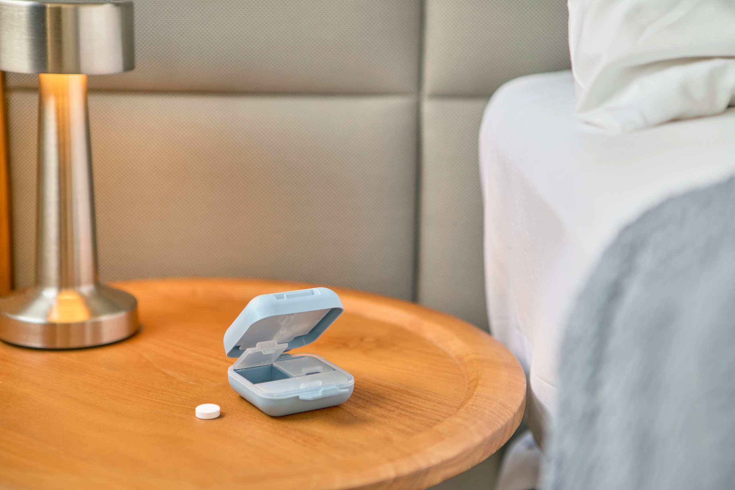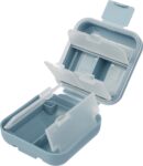 PP pillerbox med 5 individuella fack, var och en med sitt eget lock. Har en klämstängning för säker förvaring.