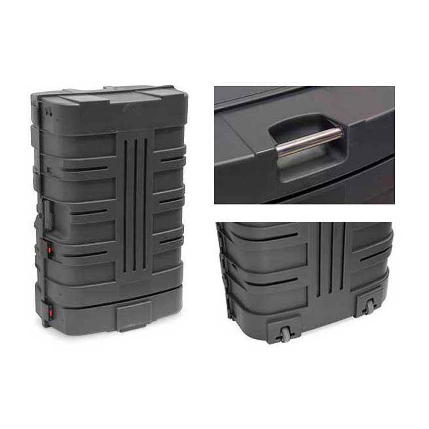 Detta är en rymlig transportbox som på minuten kan omvandlas till en elegant och stabil disk med invändiga hyllor. Materialet är noga utvalt för hållbarhet och användarvänlighet. Den har en vikt inkl toppskiva på 21 kg och en volym om 196 liter.