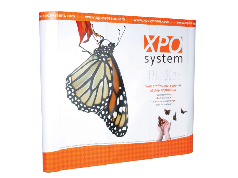 Popup vägg rak 3×4 med aluminium ram och tryck på 450g laminat. 2 lampor och transportväska ingår Grafisk storlek 404x230cm Levereras 1 st i rullväska.