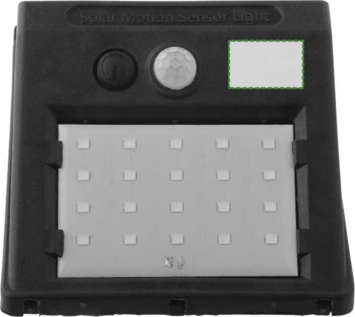 PP solenergilampa med 20-COB LED. Har en nattsensor (CDS) och rörelsesensor (PIR). Inkluderar en 800 mAh batterikapacitet, med en laddningskabel, IP44-klassning och konstant eller blinkande ljusfunktioner. Individuellt förpackad i brun kartong.