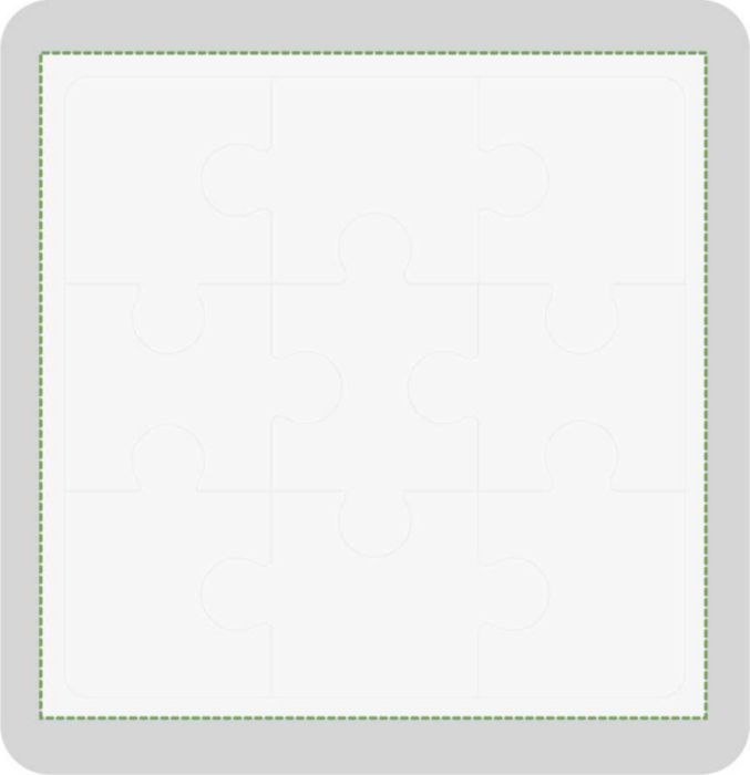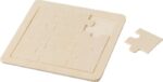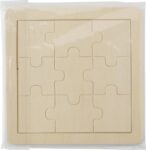 Träpussel med nio bitar placerade i en träram. Motivet kan tryckas på pusselytan.