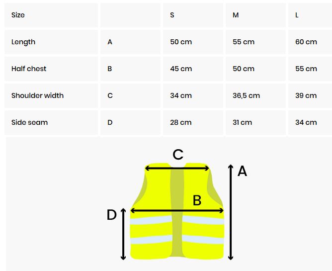 Uppfyller kraven för CE EN ISO 1150:1999 (gäller endast för Gul och Orangefärgade västar).