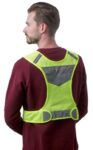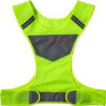 Reflexväst i nylon och polyester. Det fluorescerande tyget har ytor med reflex och tre lampor fram och bak. Batterier ingår.