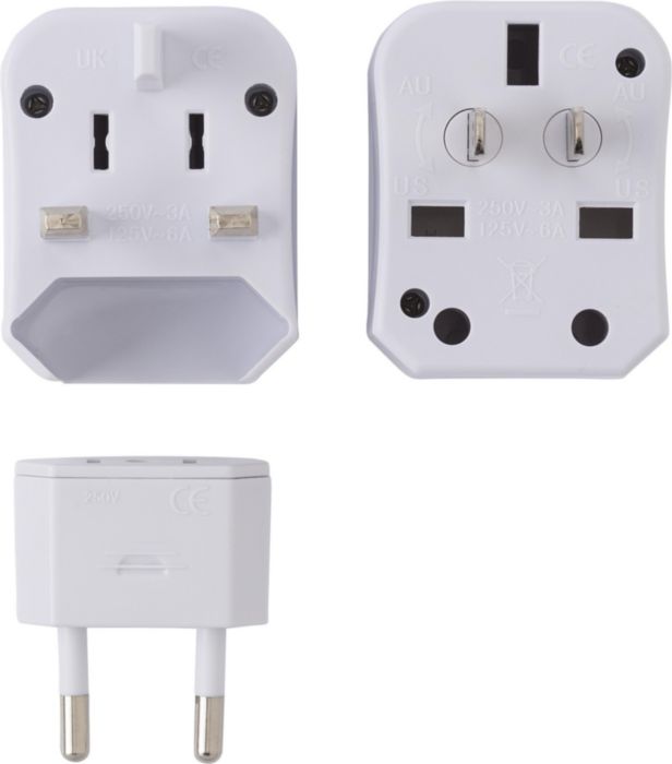Reseadapter i ABS, passar de flesta elkontakter i världen.