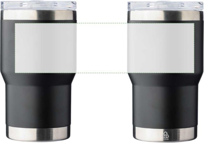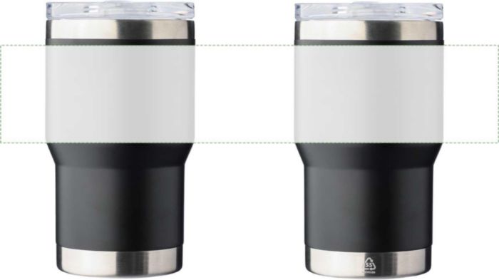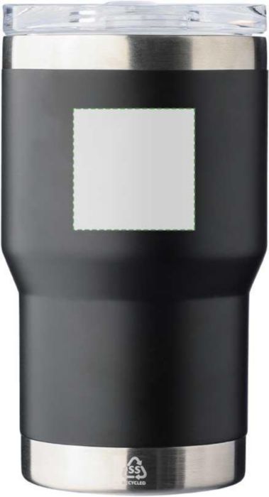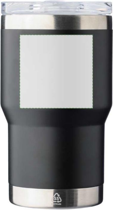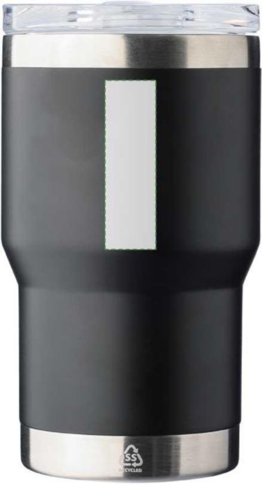 Resemugg med dubbelvägg i återvunnet rostfritt stål (350 ml). Insidan har en keramisk beläggning, medan utsidan är tillverkad av rostfritt stål 201 och innerväggen är av rostfritt stål 304. Inkluderar en graverad återvunnen logotyp på kroppen. Individuellt förpackad i en brun kartong.