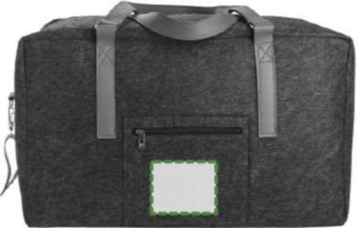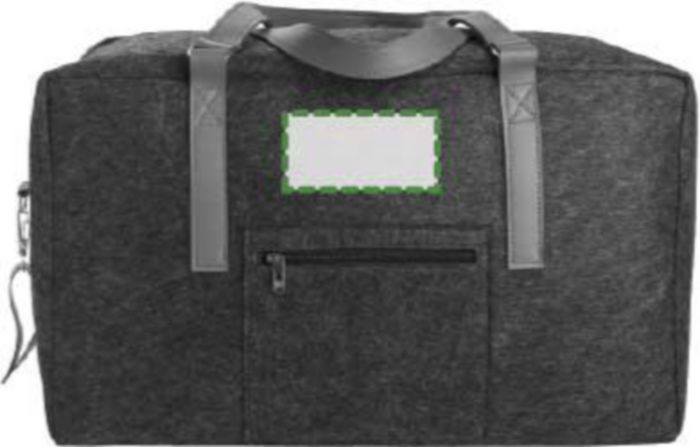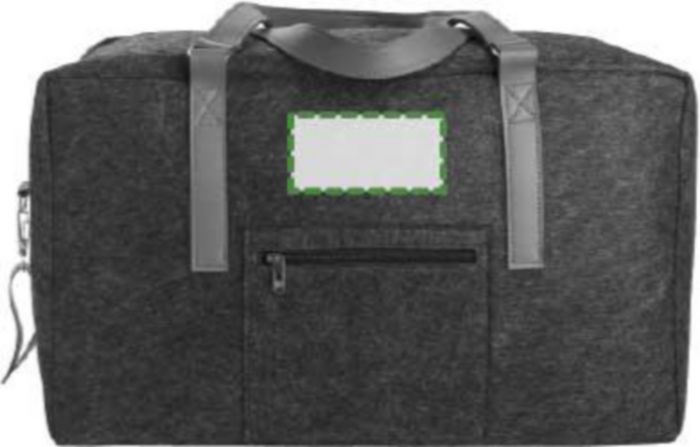RPET resväska i filtmed detaljer i PU och en bärrem. Ett stort huvudfack med dragkedja samt små fickor utan dragkedja.