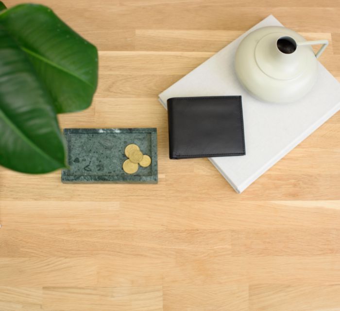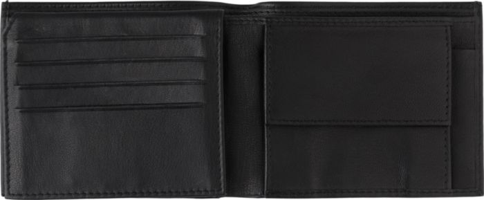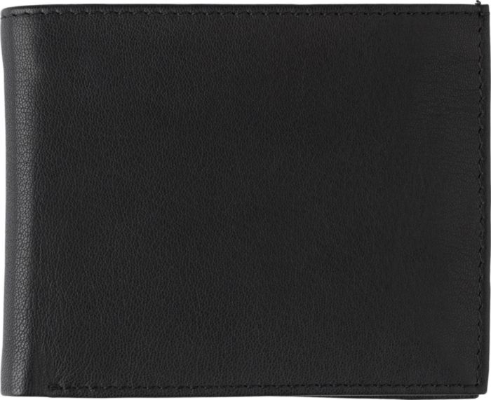 Läder (getläder) RFID-väska (anti-skimming) med myntfack med tryckknappsstängning och diverse andra fickor för kontanter eller kort.
