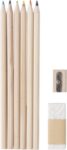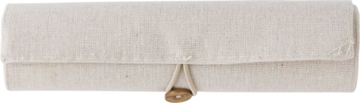Pennfodral i linne och bomull med 6 färgpennor, pennvässar och spänne i plast.