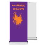 En rollup är en mycket populär reklamlösning. Detta är en av de mest kompakta formerna av reklam – den kännetecknas av stor användarvänlighet och enkel transport. Varje rollup består av grafik gömd i en aluminiumkassett och en tredelad ram förbunden med ett elastiskt band. Rollups är förpackade i eleganta, svarta väskor med ett bekvämt handtag.