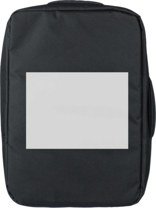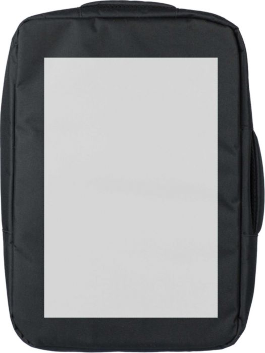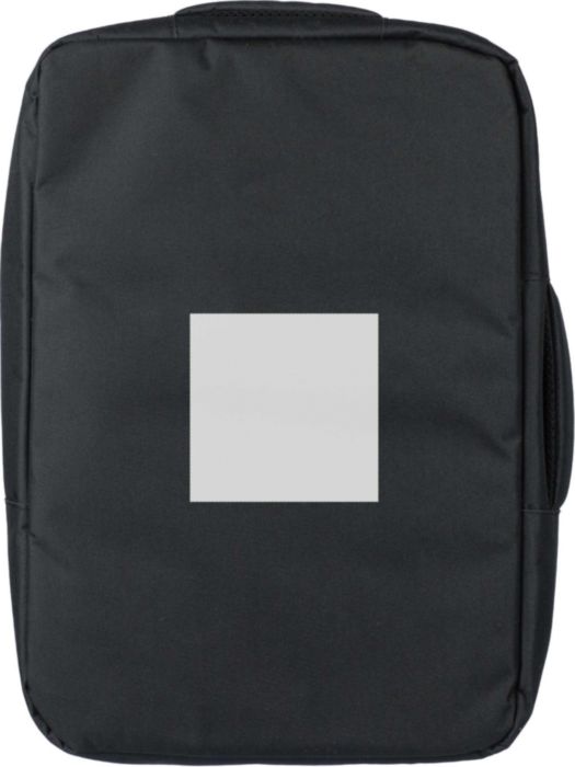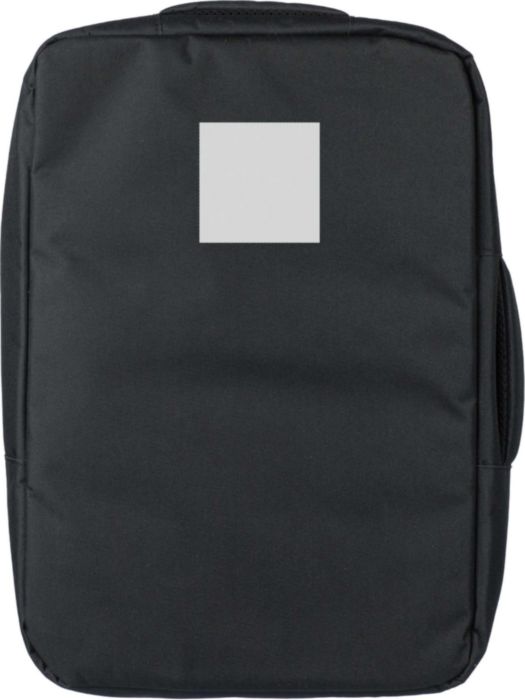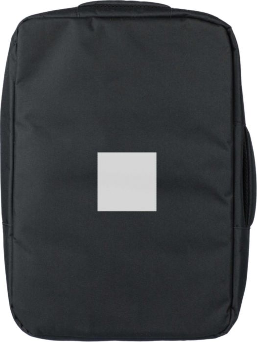 rPET polyester 300D laptop ryggsäck med ett 210D rPET foder. Har ett stort fack med blixtlås med flera insticksfickor, en kardborrstängd laptopficka för 15-tums bärbar dator och en kapacitet på 12L. Designen inkluderar ett förstärkt, ventilerat stöd, justerbara axelband, ett sidobärhandtag och en vagnrem. Bärkapacitet: 10 kg.