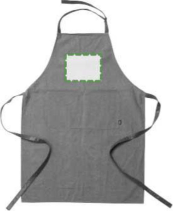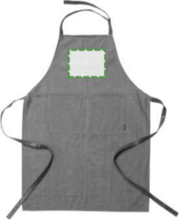 RPET-förkläde med justerbara PU-remmar. Inklusive framficka.