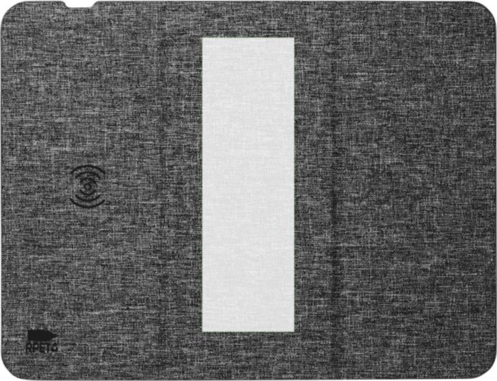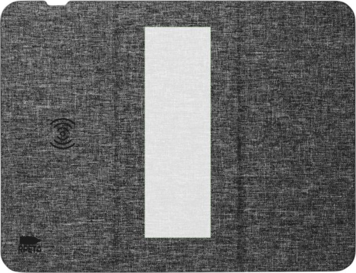 RPET-trådlös snabbladdningsmusmatta (10W). Fällbar för att användas som telefonställ. Förpackad per styck i en brun kartonglåda. Med RPET-logotyp.
