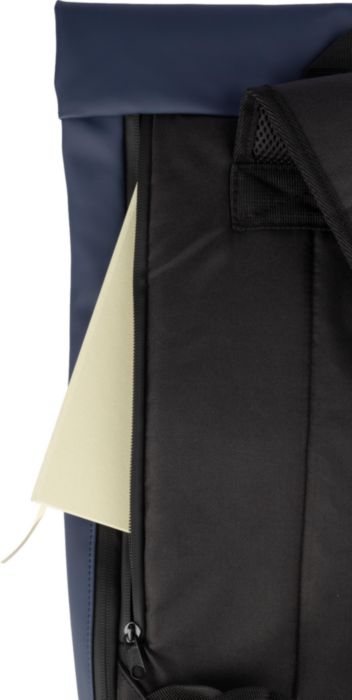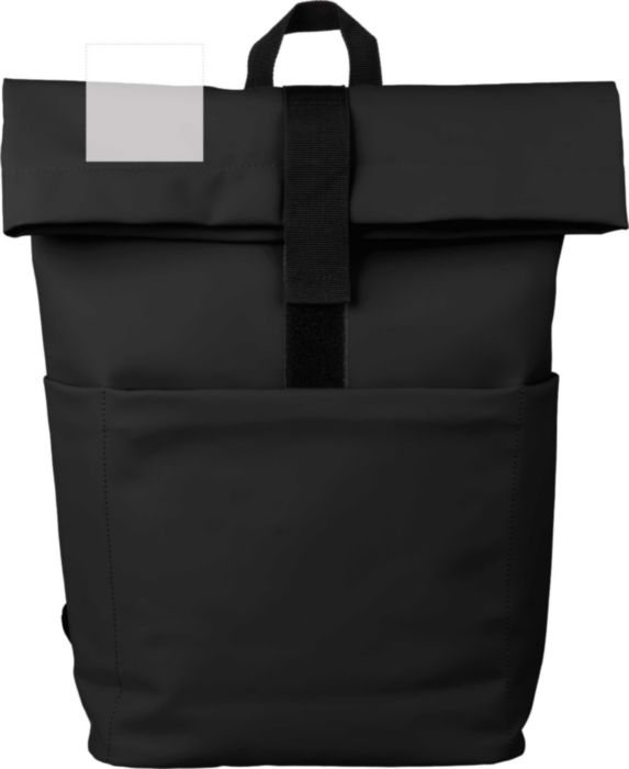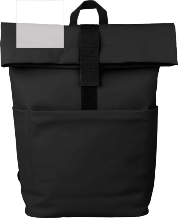 Ryggsäck i PU-läder med PU-foder (210D) och baksida av PE-skum (5 mm). Inkluderar en laptopficka (15 tum) och en ficka med dragkedja på framsidan.
