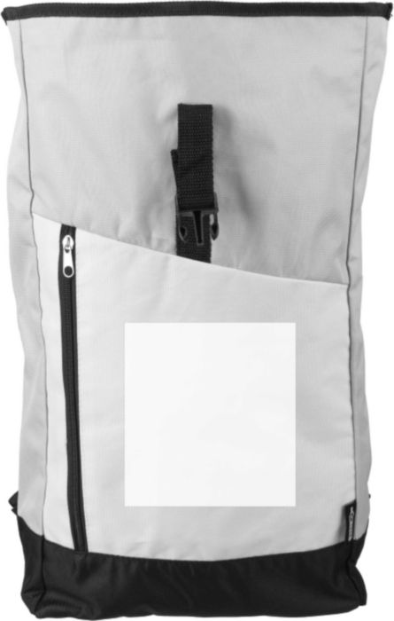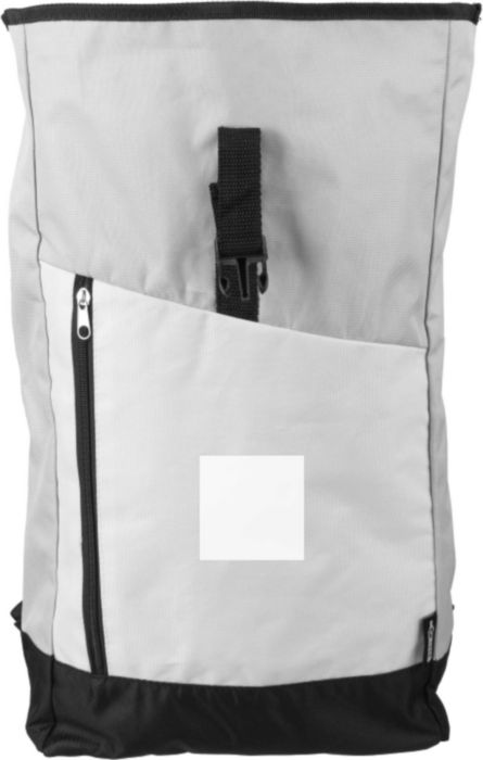 rPET (600D) rulltopp ryggsäck med ett stort fack med dragkedja på ovansidan och ett stort fack med dragkedja på framsidan. Ryggsäcken har justerbara remmar och ett plastspänne för rulltoppen.