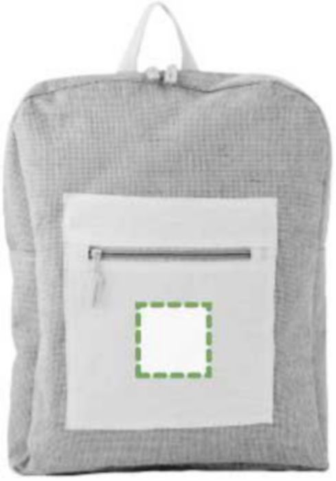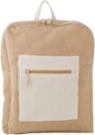 Juteryggsäck med bomullsdetaljer. Huvudfack med dragkedja och framficka. Justerbara remmar.