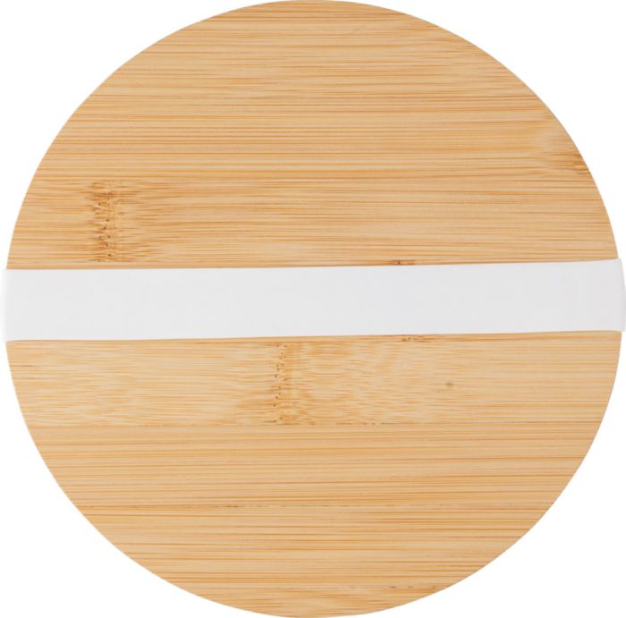 Salladsskål av glas med lock av bambu och silikonband som sluter tätt. Volym på 1200 ml. Tåligt glas (borosilikat), tung men starkt. Individuellt förpackad i brun kartong.