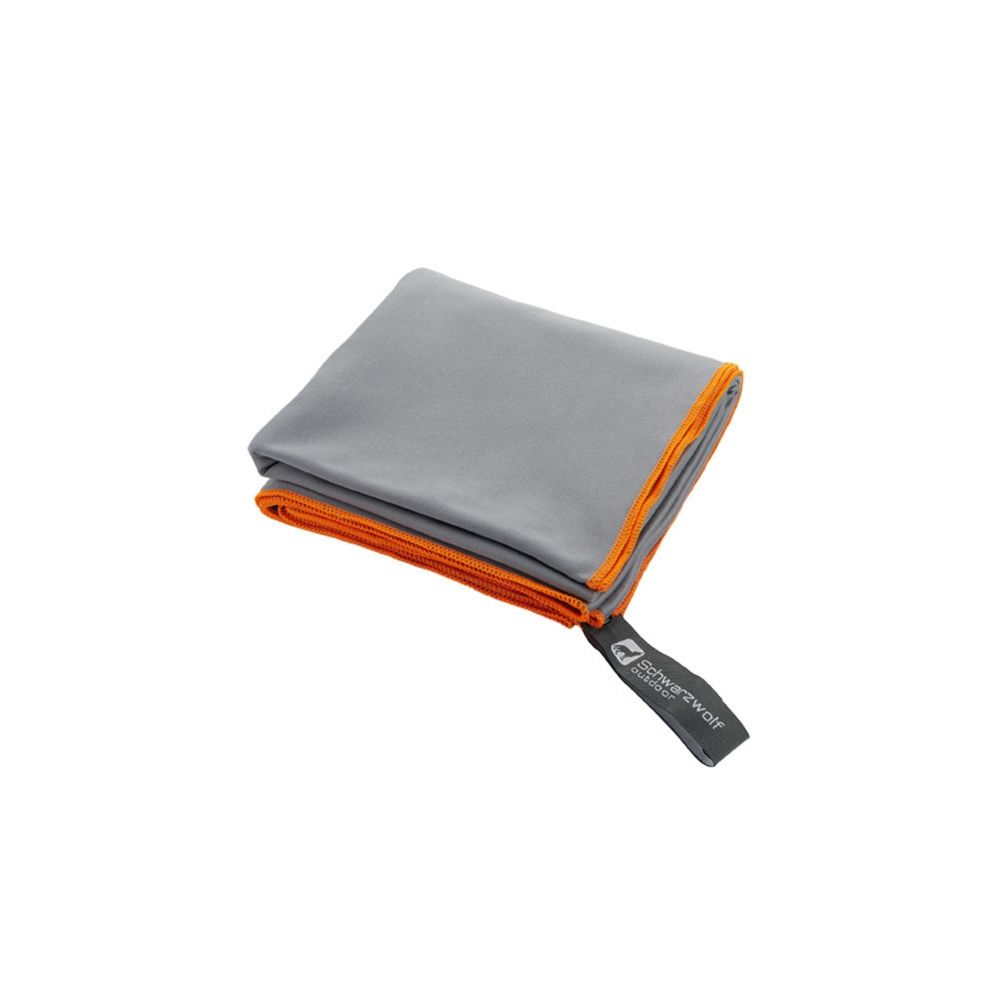 Schwarzwolf utomhushandduk i en grå färg med orange fåll.