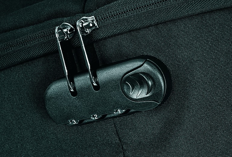 Ryggsäcken har också ett lås för att säkra blixtlås och en dold ficka för ett betalkort eller nycklar.