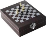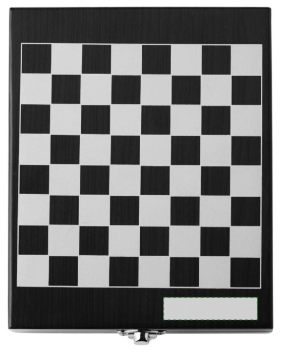 Vinset i trä med schackspel i presentförpackning av trä. Innehåller även kyparkniv, termometer, vinförslutare och droppring i metall. Logomärkning som visas är på en position (en produkt).