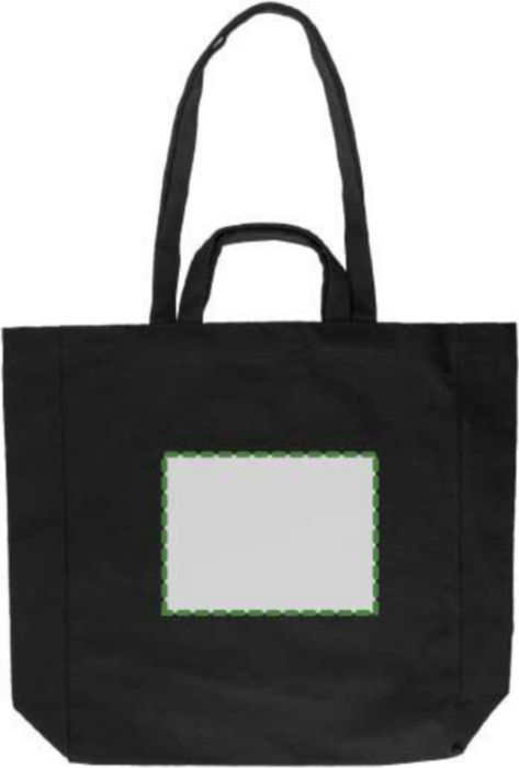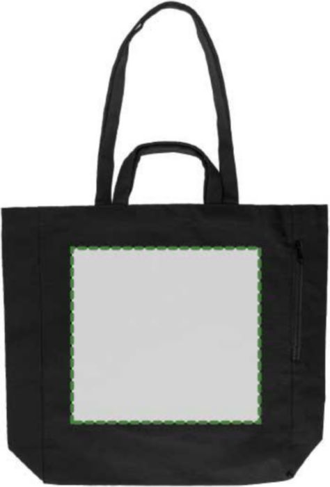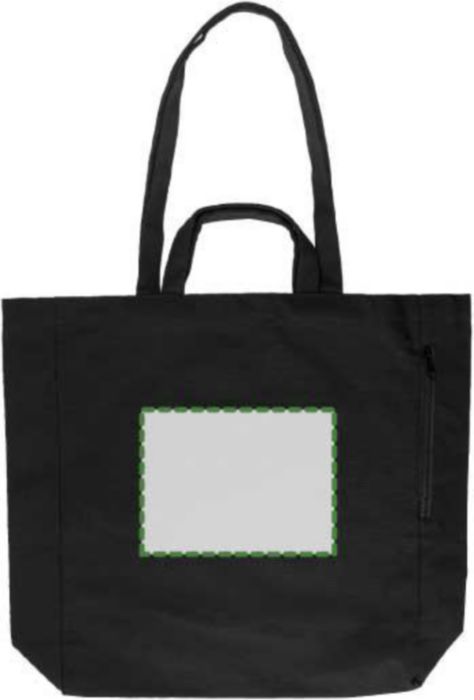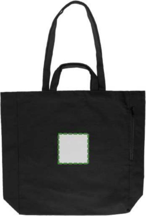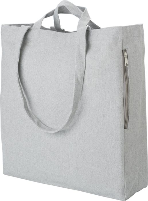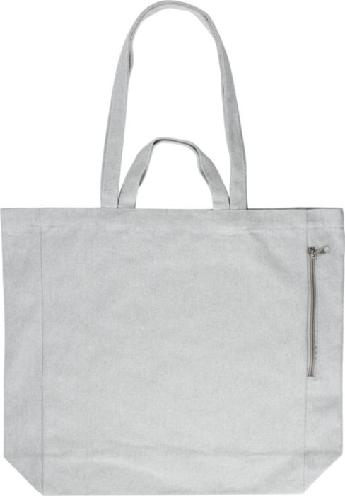 Shoppingkasse av återvunnen bomull (350 g/m²) med långa och korta handtag. Ficka på sidan med dragkedja.