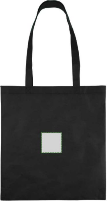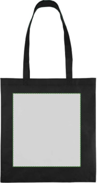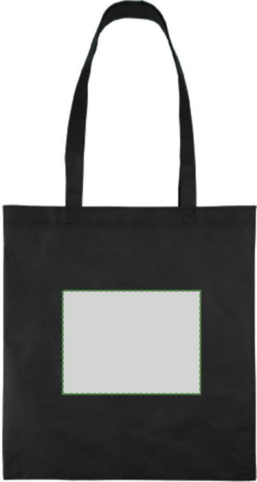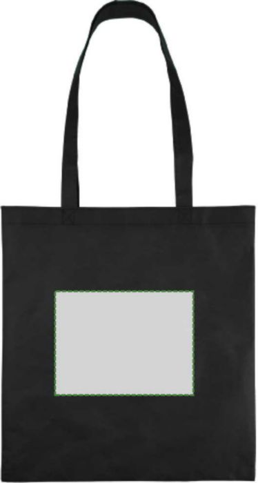 Non-woven PP-påse (80 gsm) med värmeförseglade korsstygnshandtag. Har ett stort fack. Kapacitet 11 l, bärkapacitet 7 kg.