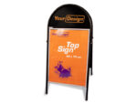 Den populäraste trottoarskylten med en praktisk toppskylt för er logo. Akrylfönster med magnetlist så att ni enkelt kan byta budskap. Affischmått 50 x 70 cm Vikt 11 kg Ø25 mm rörprofil. Tryckyta halvmåne ca 50×25 cm, tryck kostnad kontakta oss Levereras 1 st i kartong.