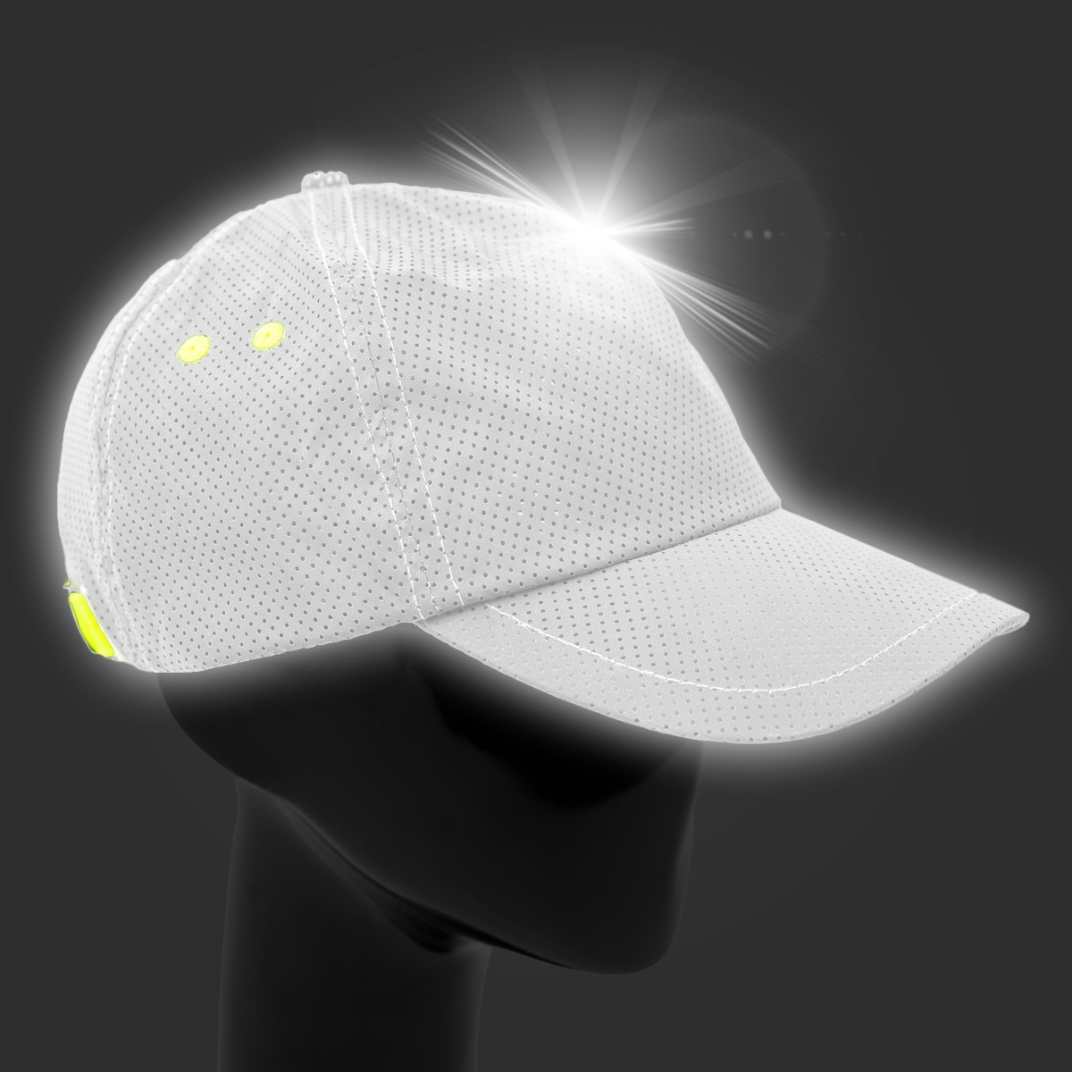 Dessutom leder detta tyg bort fukt. På dagen är kepsen silvergrå och på natten blir den vit när den reflekterar ljus.