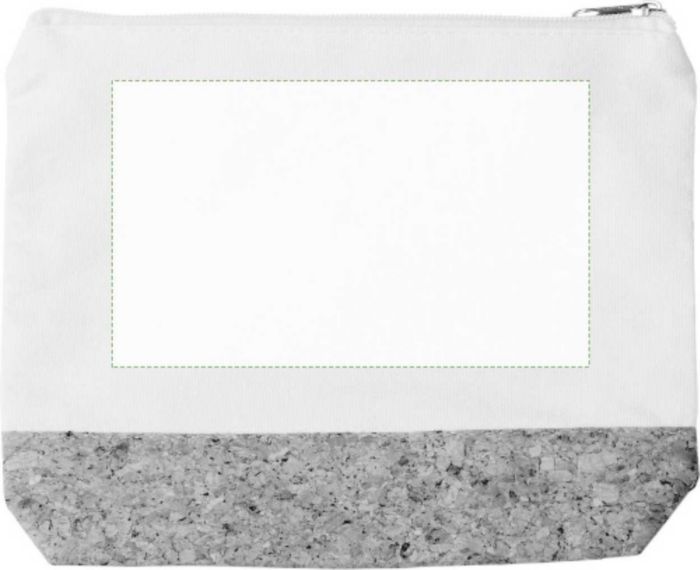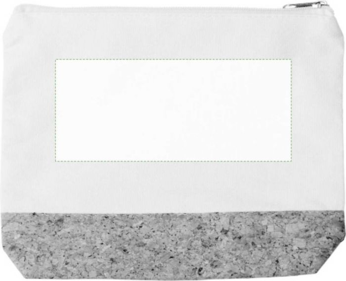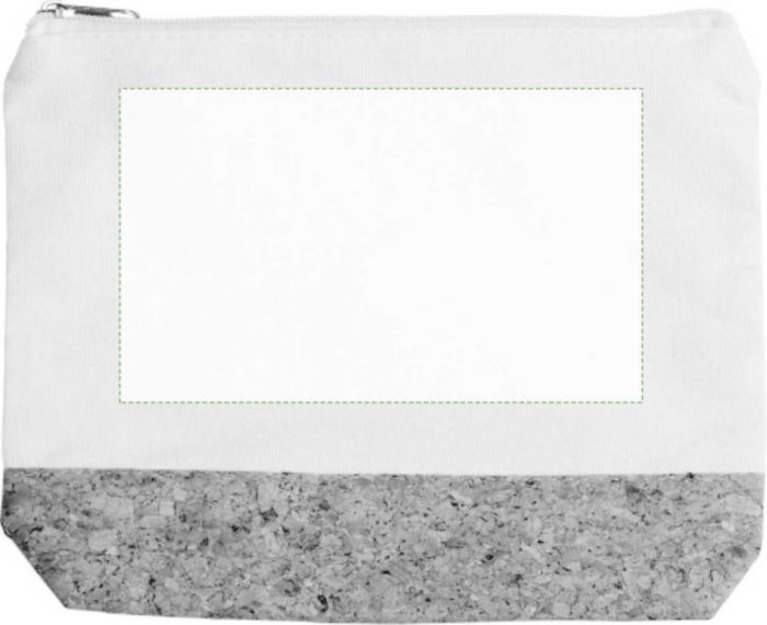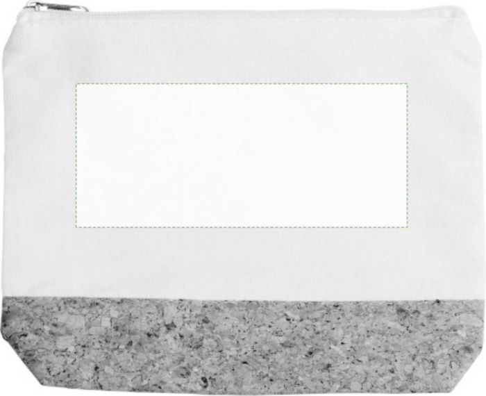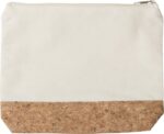 Sminkväska av bomull (220 g/m2) med korkdetaljer och dragkedja. Ett stort fack.