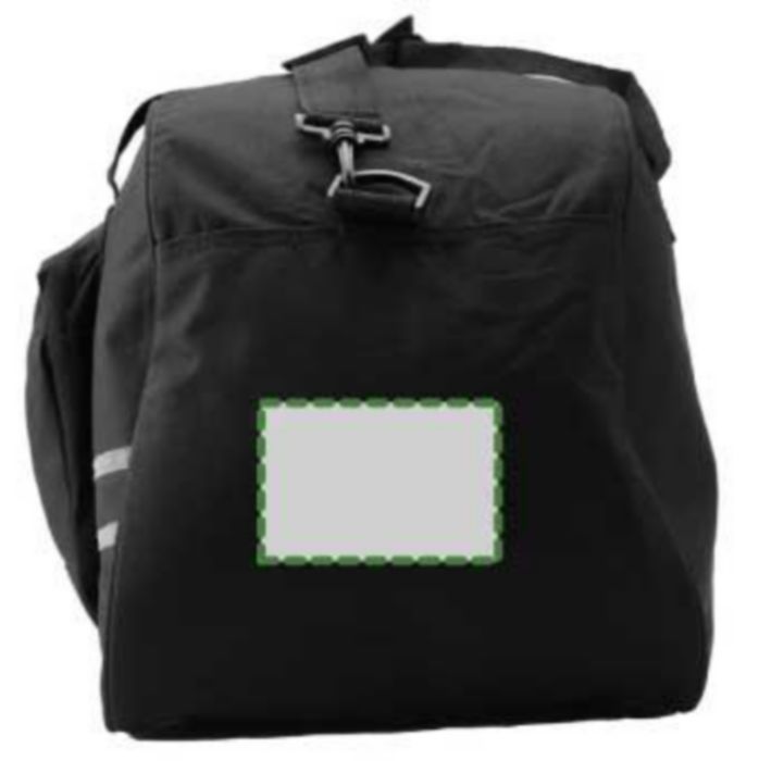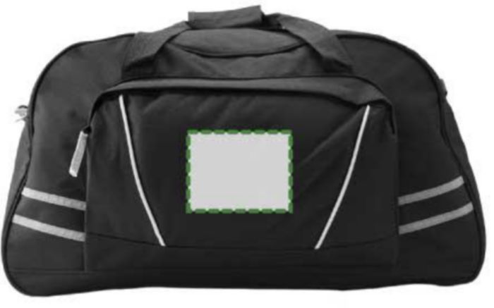 Sportväska i polyester (600D) med stor frontficka, reflexband och justerbar axelrem.