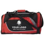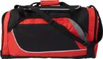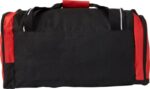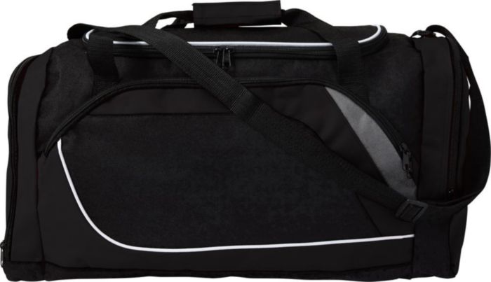 Sportbag i polyester (600D) med ett stort huvudfack, ett sidofack samt ett fack i andra kortsidan för skor. Alla med svart dragkedja.