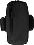Sportväska i polyester designad för att fästas på armen, med en PU-beläggning. Innehåller ett stort vattentätt fack med dragkedja med en liten ficka inuti och en vattentät ficka på framsidan.