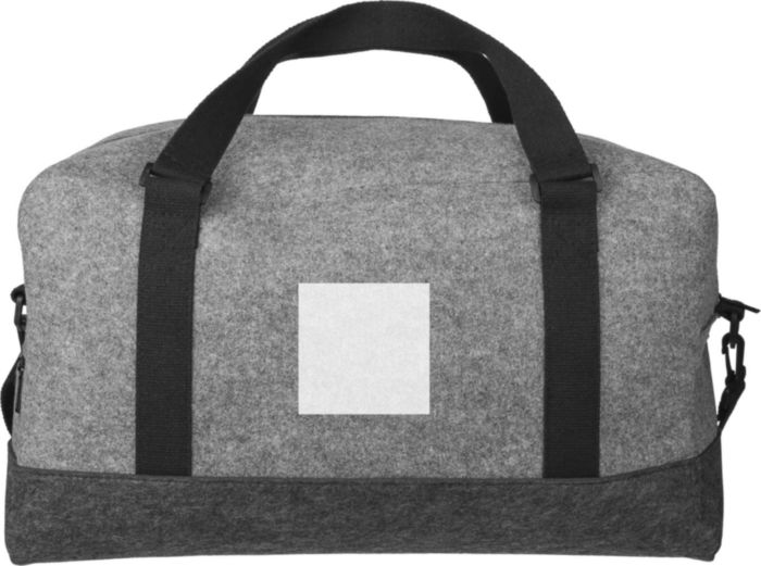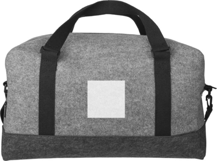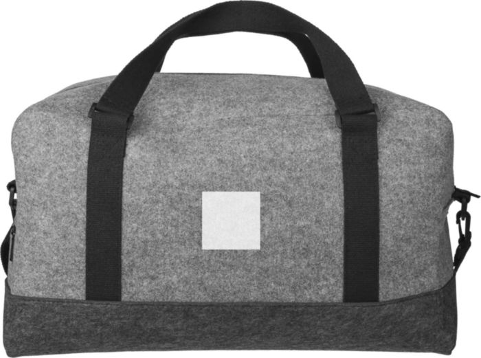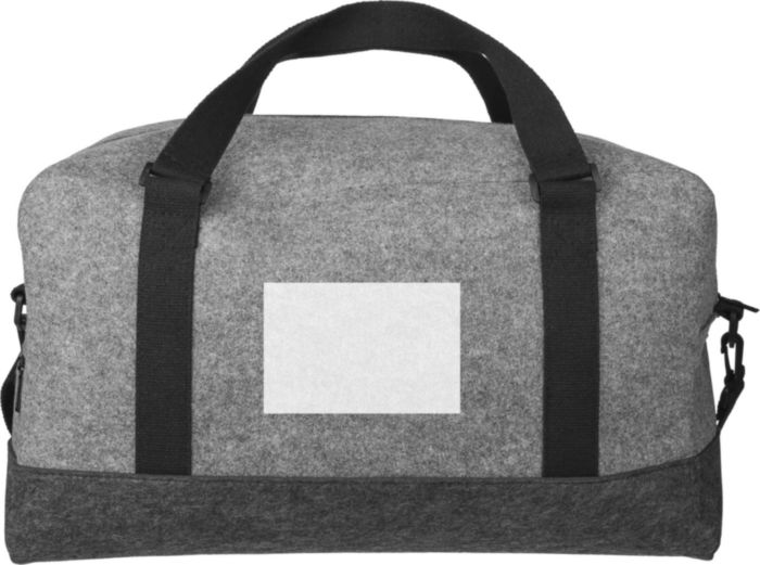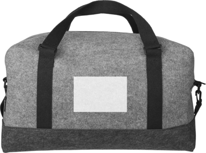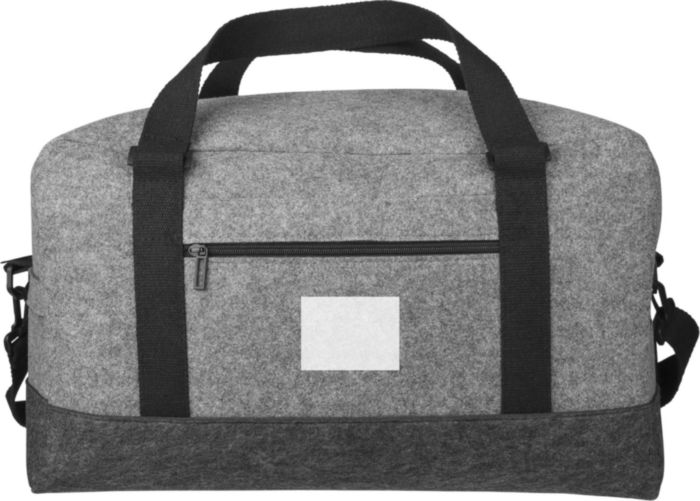 rPET sportväska tillverkad av filt med bärhandtag i canvas och en justerbar axelrem. Har ett stort fack med dragkedja och ett litet fack med dragkedja på framsidan. Inkluderar en rPET-etikett. Kapacitet: 30L. Bärförmåga: 10 kg.