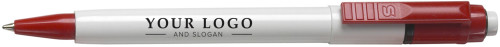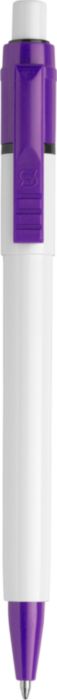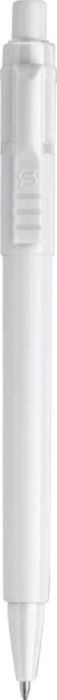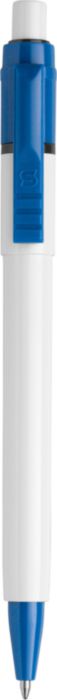 Stilolinea kulspetspenna i plast med vit kropp, färgat clip och jumbo-refill. Blått bläck.