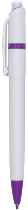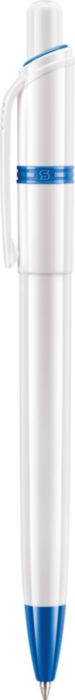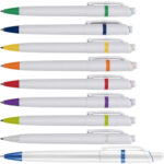 Stilolinea kulspetspenna i plast med vit kropp och färgade detaljer. Blått bläck.