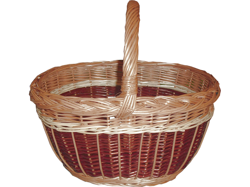 En rejäl korg av handflätad pil tillverkad i Europa av skickliga yreksmän, har ett lager av klarlack för att klara väta bättre.