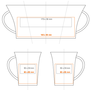 DecorationsTryck på handtaget (max: 80x15 mm); Tryck på insidan (max: 40x20 mm); Tryck på botten, insida (max: ø30 mm); Tryck på bottens utsida (max: ø40 mm); Kantband; Namntryck; Guldtryck; Matt Guldtryck; Silvertryck; Matt Silvertryck; Dekoration runt äggformad yta; Termotryck