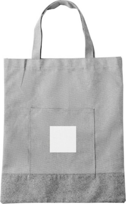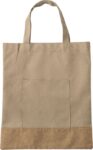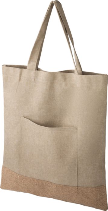Tygväska av RPET-polyester (600D) med botten av kork och naturfärg. Liten ficka på framsidan. Korta handtag. Med RPET-etikett.