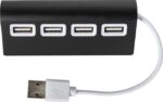 USB-hub i aluminium med 4 portar. USB version 2.0, output 5V.