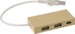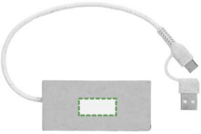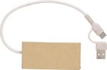 USB-hub (2.0) av aluminium och återvunnet papper. Med två USB-C-portar och två USB-portar. Ingången är USB-C. Individuellt förpackad i brun kartong.